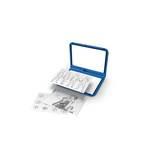With K-DRAW PRO MANGA, children can create their own heroes, inspired by the world of manga. Thanks to a clever sticker system, they can combine faces, hairstyles, clothing and expressions in endless ways – more than 1,000 possibilities! The fluorescent light board is double-sided and offers space for free, fun and creative expression. A complete tool for developing style, imagination and patience, while having fun without screens.