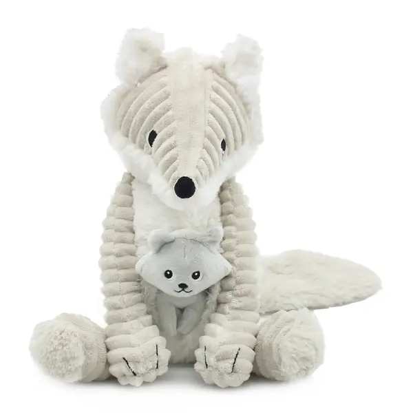 This 27 cm tall white-light grey arctic fox is made of soft corduroy and plush. And for extra cuddles, there's a baby arctic fox hidden in his belly.