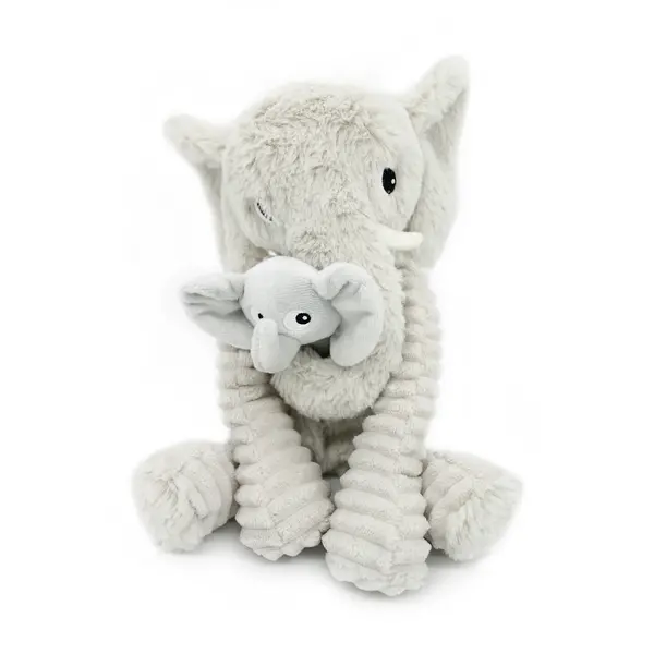 It's so important to have big ears and broad shoulders to listen to your friends! Dimoitou is the guy you can tell everything to: Stories, adventures, pains and, of course, your jokes! This 35cm grey elephant is made of ribbed velvet and very soft. With its large, long-haired ears, this plush cuddly toy is ideal for fat cuddles! Easy to catch by its big paws or its trunk, your friend Dimoitou will follow you everywhere! A baby elephant hides in its mother's belly.