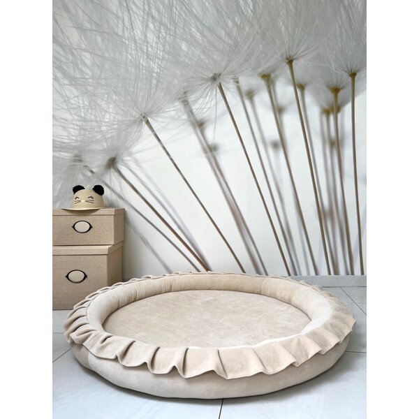 Round play mat, covered in a soft velour cotton cover, finished with elegant ruffles.