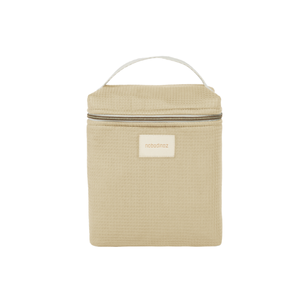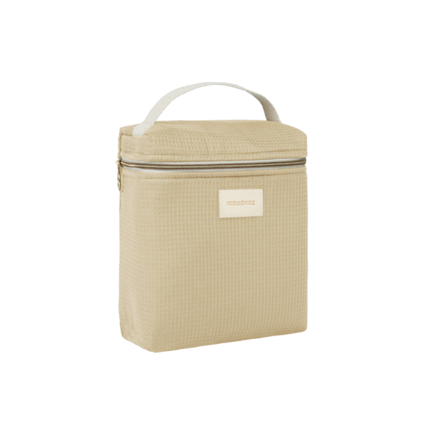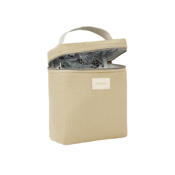With this insulated cooler bag from the Nobodinoz Concerto collection, you can carry drinking bottles, baby bottles or snacks for yourself and your children. Ideal for keeping warm and cold. The cooler bag has a capacity for two bottles and some small jars. Inside, the cooler bag has insulating foil, it closes with a zip and has a handle at the top. This practical cooler bag fits perfectly with any style thanks to its clean design and neutral colour.