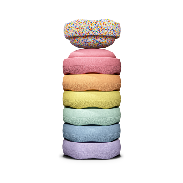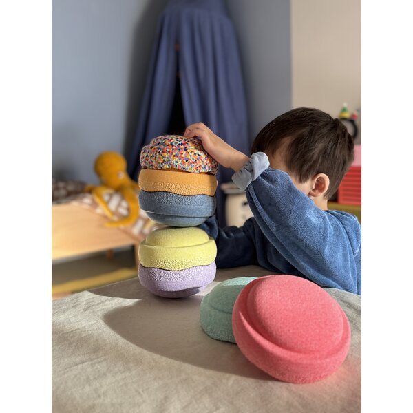 This set of Stapelstein Special Mini Special Rainbow Pastel with Mini Super Confetti consists of 7 pieces in different cheerful colours. These stacking bricks bring movement and creativity into children's daily lives. They can sit with and on these stacking stones, move, play, balance, make a track, jump on and over and much more ... . Stapelstein develops open ended toys for all ages. Stapelstein stacking bricks are made of EPP, a firm polypropylene-based Styrofoam. They are produced 100% climate-neutral in Germany and are recyclable.