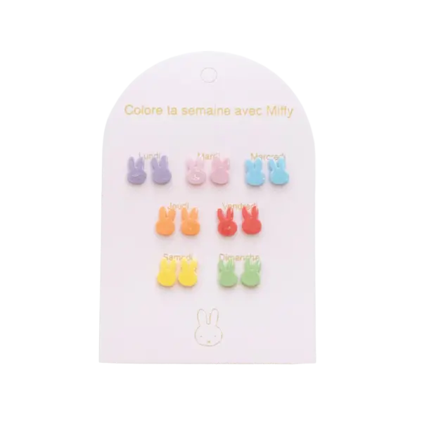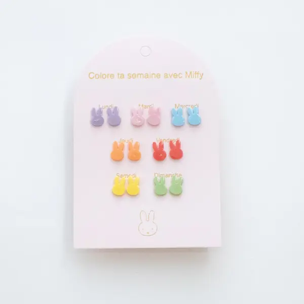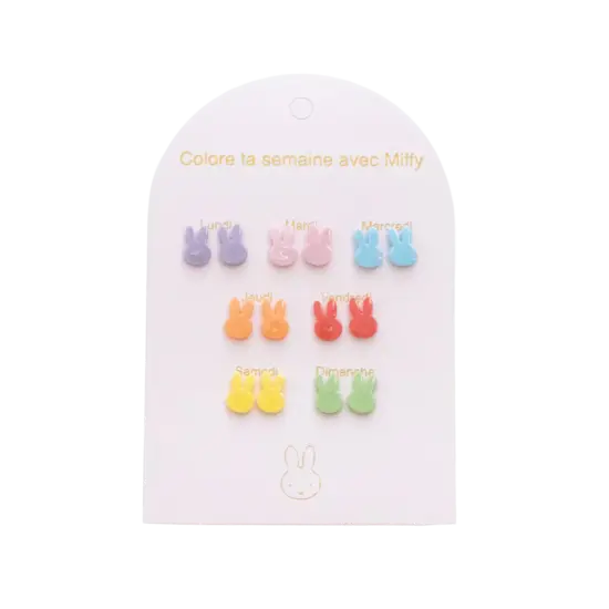 7 pairs of ceramic and stainless steel earrings with one pair per day of the week. Each set comes in a beautiful gift envelope.