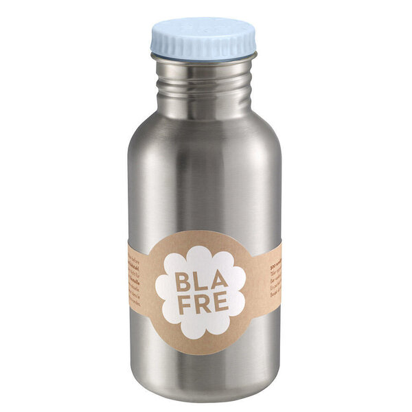 Blafre drinking bottle in stainless steel, with a capacity of 500 ml and light blue colored cap. This practical drinking bottle is easy to open, close and doesn't leak. The water bottle can be put in the dishwasher.