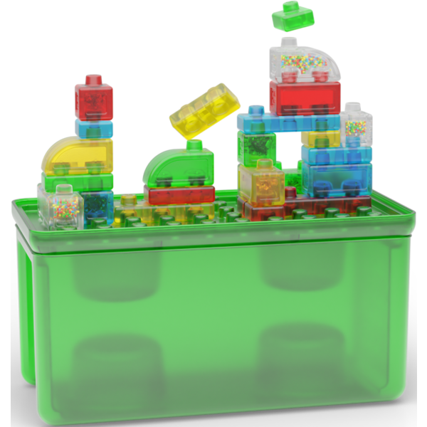 Bring children's imaginations to life with the Jelly Blox 2-in-1 Storage Box! With the blocks from the Jelly Blox 2-in-1 Storage Box, children can not only build, but also squeeze and flatten them. Some blocks are filled with materials such as sand, cubes or foam balls that stimulate the senses and promote sensory tactility. With this set, you immediately have a handy stackable storage box to store the blocks in. This box can also be used as a base to build on!