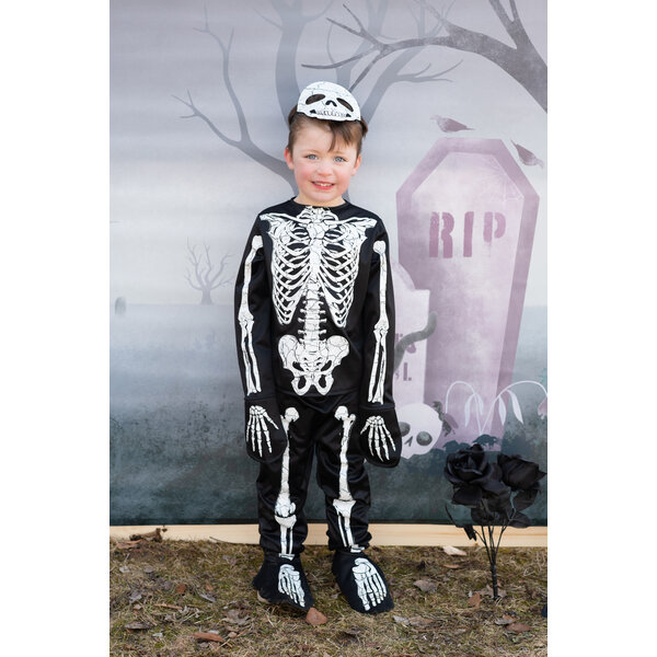 Introducing the ultimate statement piece for your next Halloween party or rave - the Glow in the Dark Skeleton Shirt, Pants & Mask! Made with high-quality materials, this set is not only comfortable to wear but also durable enough to withstand all-night trick-or-treating. The skeleton design is made using special glow-in-the-dark ink that is charged by light, giving you an otherworldly look in low-light environments. It's long sleeves & pants are great for bundling up and withstanding a Canadian Halloween! The shirt features long sleeves and a crew neck, while the pants are designed with an elastic waistband for a comfortable fit. The matching skeleton mask completes the set, adding an extra layer of spookiness to your look. Get ready to light up the night in this epic Glow in the Dark Skeleton Set!