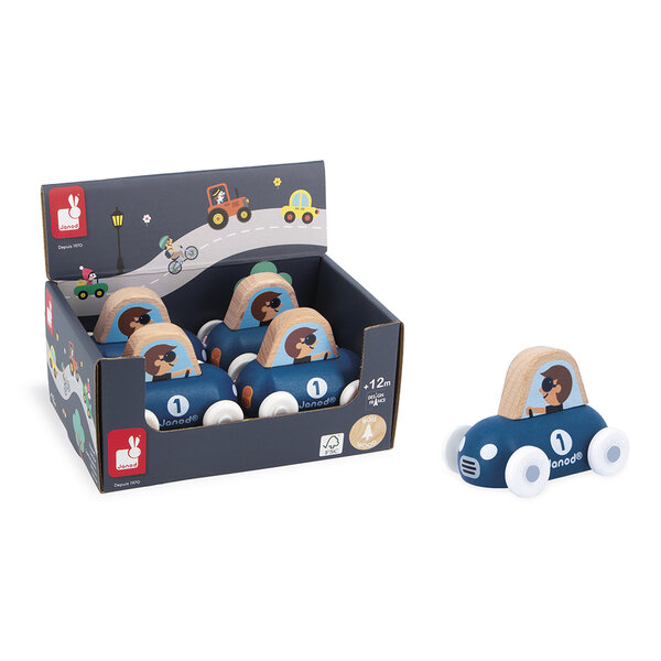 Ready for the next pin? This little wooden car is suitable for children aged 12 months and up. With his sports car, this amateur racing driver takes corners and admires the valley! The shape is specially designed for the little ones, who can easily hold the car at the top to make it roll. The vehicles are perfect for making up stories and developing the imagination! Babies enjoy rolling them around, while older children can invent all kinds of adventures, developing their vocabulary and creativity. This little car from Janod is part of the Cross Roads collection: a series of play mats with circuits, which are even more fun when combined with the cube sets and small wooden vehicles. The sports car goes particularly well with the Mountain Valley play mat, but can also be used with other mats from the range. It is made from FSC™-certified wood from sustainably managed forests. ‘Now that's what I call driving!’