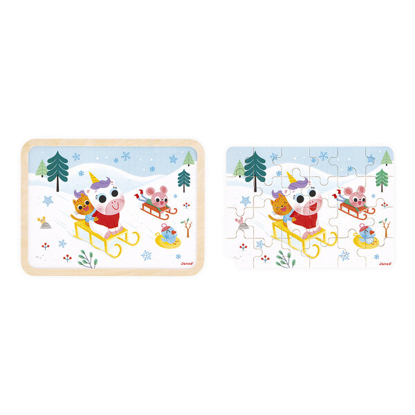 Janod's Mountain Puzzle is an adventure puzzle that takes children to the mountains. With 24 sturdy pieces and a beautiful, colourful design, children discover animals and nature in a mountain landscape. This puzzle promotes both fine motor skills and problem-solving, while encouraging imaginative play. Ideal for young explorers who love adventure!