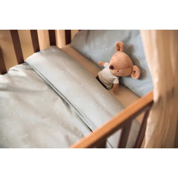 The cute duvet cover with Twinkling Wild Rose print is suitable for the size duvet that fits in a cot. The cover has a handy opening at the bottom for easy shuffling of the duvet into it, it also comes with pillowcase. This enchanting design brings the peace of the stars to your baby's room, with a soothing print in the soft shade of Ivory. Let your little one dream away under a starry night sky.