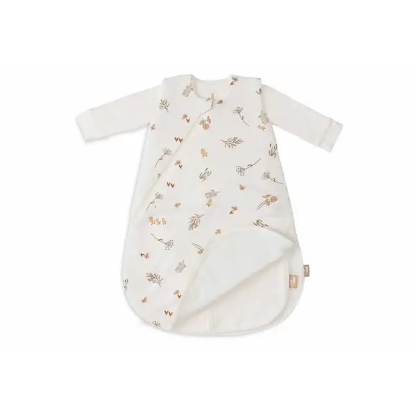 This sleeping bag has 3 TOG values depending on how you wear the sleeping bag. Only the inside sleeping bag has a TOG value of 0.5. Only the outer sleeping bag has a TOG value of 2.5. If you combine the two sleeping bags, together they have a TOG value of 3.5. This sleeping bag is perfect for your newborn and this cute Riverside print will of course look great on your mini. The print is an all-over print with ducks, bunnies and riverside plants on an Ivory coloured background.