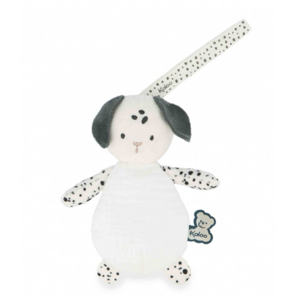 Three little puppies to stimulate all your baby's senses! This set of three cuddly puppies is ideal from birth and promises your child hours of sensory discovery. With their ribbons for hanging them anywhere, these little cuddly toys will find their place on your baby's play mat or in their pram, ready to accompany them everywhere! With their contrasting colours and rich prints, these developmental toys are as beautiful as they are well designed for your baby's development. They stimulate fine motor skills thanks to their size, which is perfectly suited to little hands; they stimulate vision with contrasting dot prints; they stimulate the sense of touch with different textures; and they introduce your baby to new sensations. They also stimulate hearing with crackling paper that intrigues and amuses your little one. To further pique their curiosity, one toy is weighted and the other is lighter. Each puppy is 15 cm tall and has its own unique features that your baby will love to discover! Hang up these little dog-shaped cuddly toys and let your child enjoy these sensory development games. This set of 3 sensory soft toys is part of KALOO's Stimuli range, developed in collaboration with psychomotor therapists to help babies develop their sensory motor skills from birth. These soft toys are machine washable at 30°C on a delicate cycle and are made of microfleece, faux fur, terry cloth and muslin, with a recycled polyester filling.