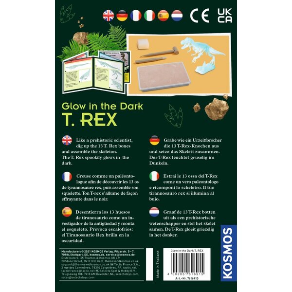 Why can it do that? You will find the answer and much more exciting information about dinosaurs and fossils in the instructions. The KOSMOS excavation kit glow-in-the-dark T-Rex is a great gift for children aged 7 and up or an exciting assignment for the next kids' party.