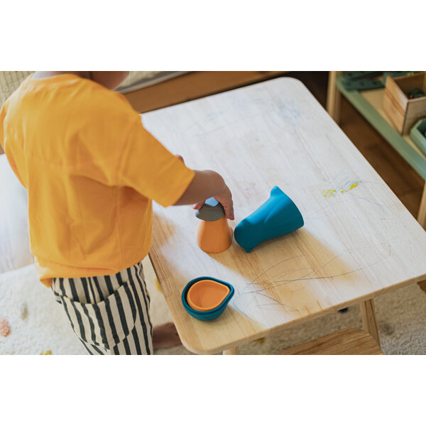 Specially designed to accompany babies during their first months of sensory discovery, Little L teething rings and toys made of food-grade silicone are soft, flexible and safe. Their simple lines make them multifunctional toys and invite free play: constructions, symbolic games, indoors or outdoors, in the bath, make room for little ones' creativity and imagination! They are easy to wash in hot water or in the dishwasher for hours of fun! Children can build a tower, classify them from small to big, in the bath or many other ways. 10 months+.