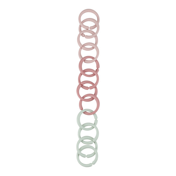 These multi-functional toy links are your favourite helpers! Use them to make a chain and attach a soft booklet to your baby’s stroller, or to hang a favourite toy on a car seat. There are many ways to use these helpful Little Loops. Be creative and find out for yourself how practical these links can be. The loops come in the base colours of the Fairy Garden collection and are made of Polypropylene (PP) without any harmful substances. This makes them safe for little ones to play with. They may look simple but will keep them entertained for sure! There are 12 loops in one pack which is exactly enough to reach from one side of the stroller to the other.