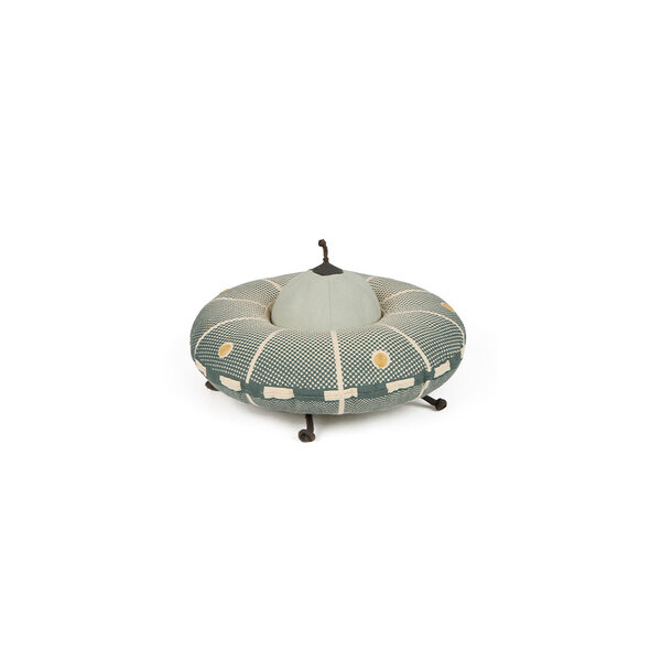 Handmade from soft cotton and hand-printed with UFO details, it is ideal for playtime adventures or as an original decoration for any room or playroom.