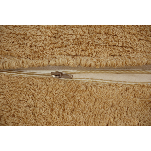 A big sleepy bear to cuddle with! This lovely bear will be your best friend forever. Sleepy Bear has soft fur in honey-colored cotton and ears, nose and feet in cotton canvas. The central part of the bear pouf has a removable inner filler, stuffed with polystyrene beads, while the paws are filled with soft polyester filling. The case has a practical zipper, to easily remove the inner filler before washing.