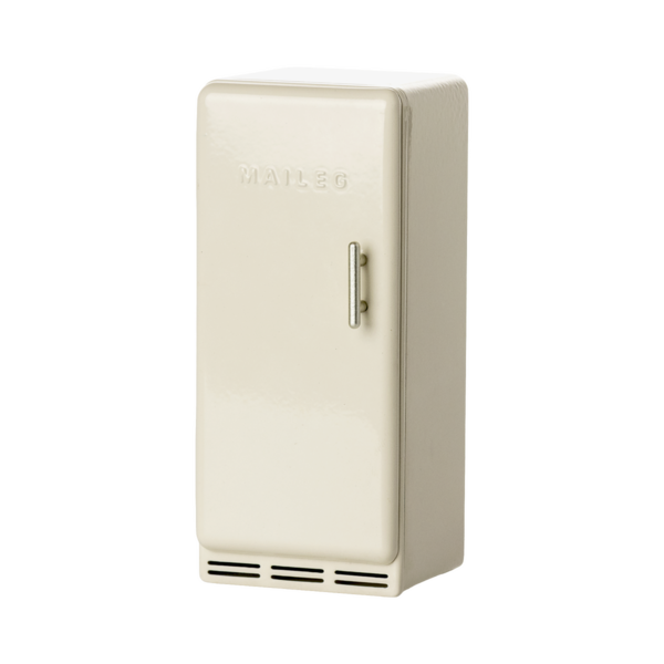 An old-fashioned refrigerator that fits perfectly in the Maileg Mouse Hole Farmhouse. Inside the refrigerator, you will find a piece of cheese, sausage, and some ice creams. These provide even more storytelling opportunities and playtime fun.