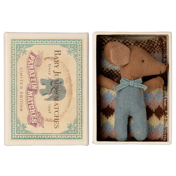 Maileg | Sleepy Wakey Baby Mouse In Matchbox - Blue