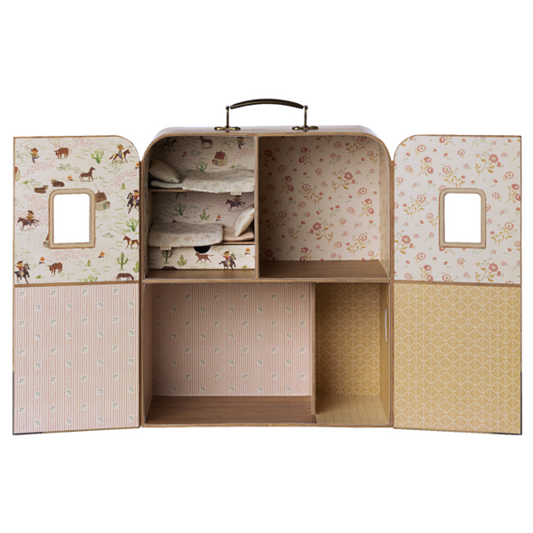 Welcome to SuitCasa – a small portable house. It fits perfectly with the dimensions of the little brother and sister mice. Two sets of soft bedding for your friends are included, but you can also purchase various other small pieces of furniture to furnish the house.
