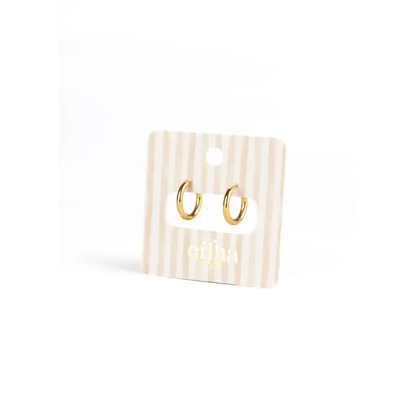 They are made from gold-plated stainless steel, hypoallergenic, water-resistant and safe to wear 24/7, even for children with sensitive ears.