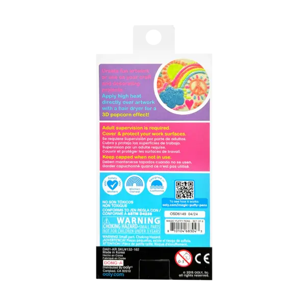 This set of puffy pens is magical – no abracadabra needed! In just 60 seconds, the ink from these puffy paint pens expands as if it comes to life! For this fun twist on 3D art, all you need is paper, a hairdryer and these amazing popcorn pens! This set of six non-toxic magic puffy pens in neon colours is the perfect tool for creating unique art or surprising someone with a homemade 3D greeting card! Just use the pens, let the ink dry, heat it for about a minute and watch it puff up proudly!