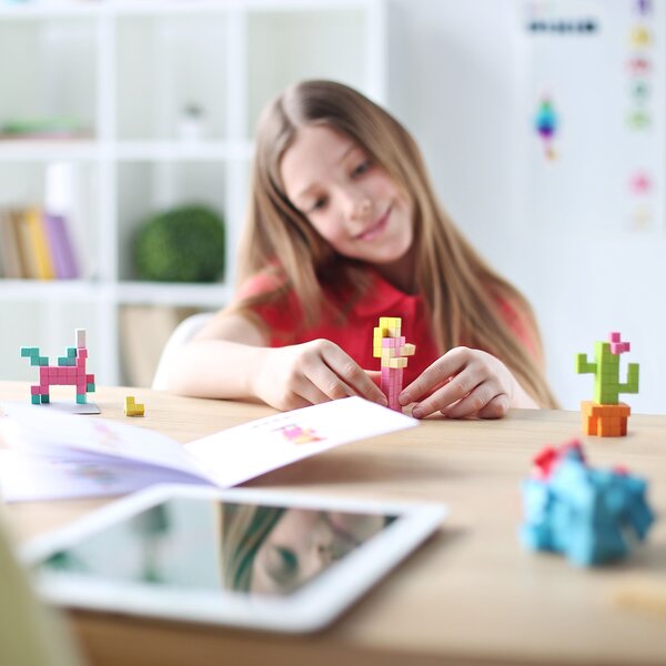 With 100 PIXIO blocks in six perfectly coordinated colours, you can bring even bigger ideas to life. The set contains six basic colours: black, white, red, green, yellow and turquoise. Now you can create one large 3D object or several figures at once.
