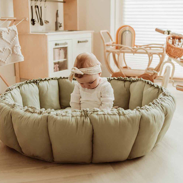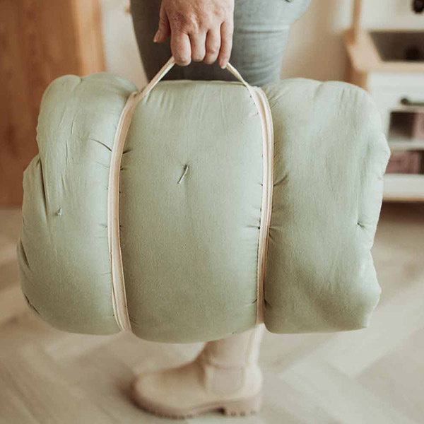 The Play and Go Bloom Meadow Green Organic is a unique 3-in-1 play mat that grows with your child. When the petals of this play mat are raised, they form a safe lounger for your baby, with soft bumpers for protection. When the petals are in bloom, the play mat opens and the bumpers are lowered, creating a large, comfortable play mat for babies and children. Perfect for tummy tuck, supervised play and exploring. The Play & Go Bloom can also be displayed in the nursery or playroom, where your child's favorite toys are stored and everything stays in one place. This play mat is lightweight and easy to move thanks to the separate carrying straps. It provides a familiar space for your little one, wherever you are.