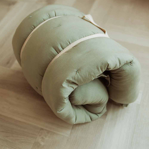 - Material: Exterior: 100% organic cotton - Filling: Made of GRS quality recycled PET - Thickness: +- 5 cm