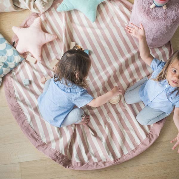 Play mat Stripes Pink New is just perfect for experiencing fun adventures! This fun play mat is at the same time a practical storage bag in an amazing all over print. With this storage bag you keep toys in place in an easy way, ready for play! The sturdy cotton and drawstrings on this play mat, make it easy to carry the storage bag from room to room after finishing your play. Its portable, hard wearing design also makes this play mat and storage bag in one into the perfect Lego storage sack for all those tiny pieces of Lego! This play mat and storage bag is great to take along to the beach, the park, on holidays or trips to visit grandparents.