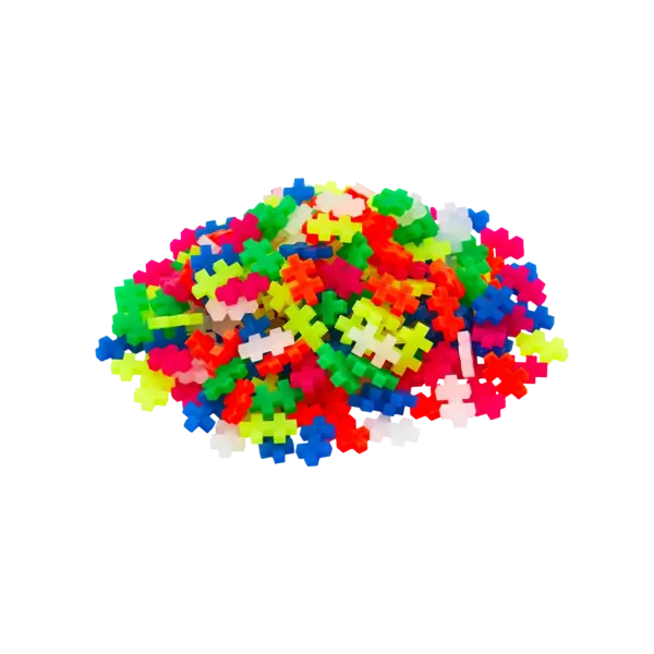 This world of neon colours is a veritable explosion of beautiful hues. Imagine building a sparkling flower garden with bright pink flowers or a futuristic spaceship with shiny green details. With Plus-Plus, there are no limits to what you can create!