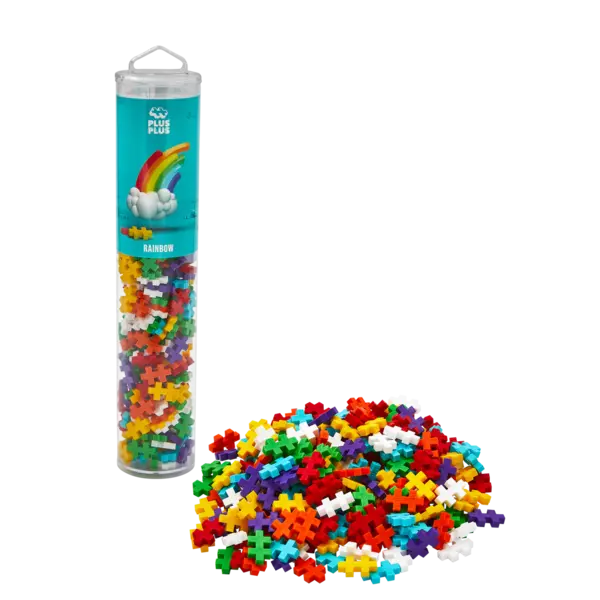 Plus-Plus is available in a whole range of colours, and our Rainbow Colormix is no exception. The tube contains red, orange, yellow, white, apple green, turquoise, purple and white. The Colormix has no set theme for what you can build – it encourages free play, so you can easily create whatever comes to mind. With Plus-Plus, you decide how you play. The small pieces click together easily and before you know it, you’ve made your own creation. You can build a flat design, or you can throw yourself into making a 3D creation. Either way, it’s free play, and the many vibrant colours make playing with Plus-Plus even more fun.