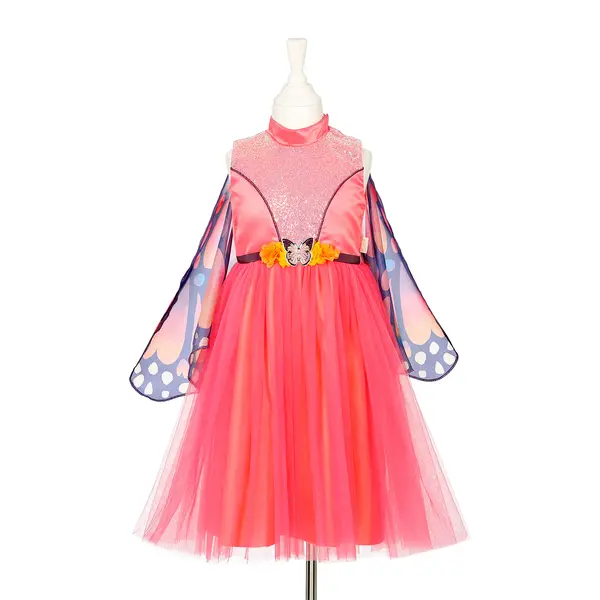 Lady Papillon is one of the noble ladies of a magical land far away. She is a fairy, you know, with beautiful butterfly wings. She loves to fly in the sunny sky and enjoy the wind in her hair. The Papillon dress is made of 100% polyester. The length of the skirt is 41 cm (3-4 years), 54 cm (5-7 years) and 65 cm (8-10 years).