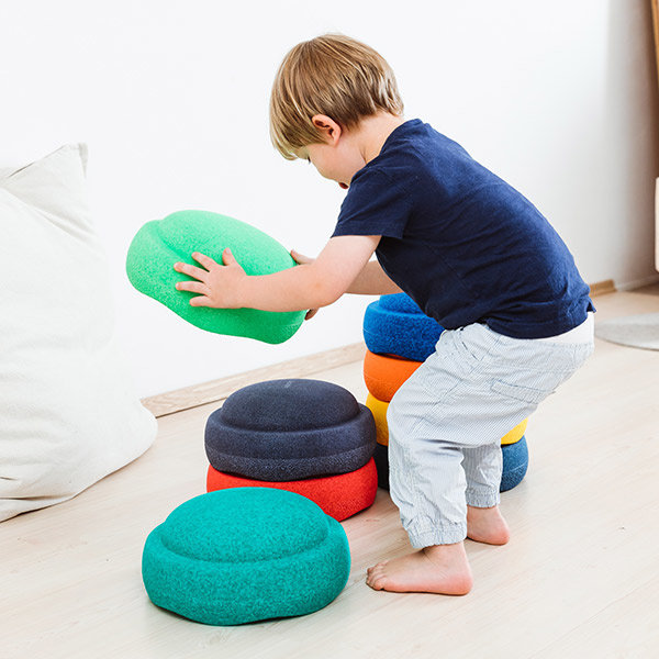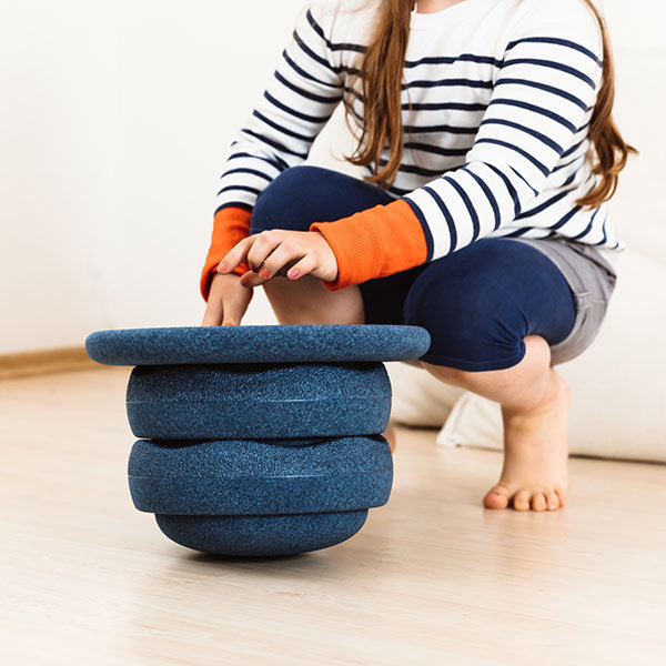 Balance board Night blue is the ideal addition to your Stapelstein stacking stones. The balance board brings movement and creativity to the daily life of children. Combine it with the stacking stones and you can start sitting, moving, playing and balancing! Stapelstein developed open ended toys for all ages. The Stapelstein stacking stones and balance boards are made of EPP, a sturdy polystyrene foam based on polypropylene. They are produced 100% climate-neutral in Germany and are recyclable.