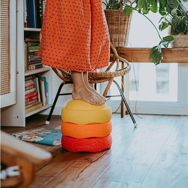 This set of Stapelstein stacking stones Warm Classic consists of 3 pieces in different colors. These stacking stones bring movement and creativity to the daily life of children. They can sit with and on these stacking stones, move, play, balance, make a course, jump up and over and much more .... Stapelstein developed open ended toys for all ages. The Stapelstein stacking bricks are made from EPP, a sturdy polystyrene foam based on polypropylene. They are 100% climate-neutral produced in Germany and are recyclable.