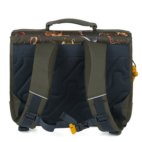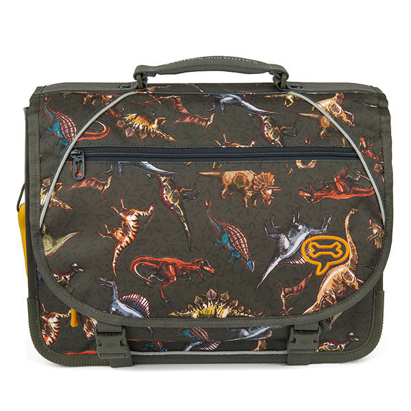 School bag Lily Dinosaurs Khaki is suitable for the first and second grade. This school bag has two spacious compartments for carrying folders, school books, a lunch box and drinking bottle. Furthermore, this school bag has a storage compartment with a zipper in the flap and a spacious front pocket with zipper and extra small compartments for storing keys and a wallet. The school bag opens and closes very easily with 2 click locks. The padded back and the 2 adjustable, padded shoulder straps provide extra comfort. Subtle reflective bands contribute to extra safety in traffic. The bottom and corners have a reinforced finish so that this school bag can withstand the daily school run perfectly. A super handy book bag for a whole day of school!
