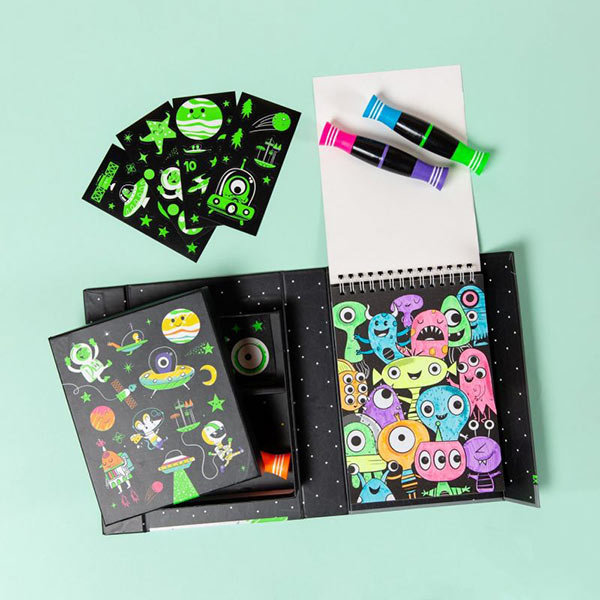 Features of this Tiger Tribe Neon colouring set Outer Space: