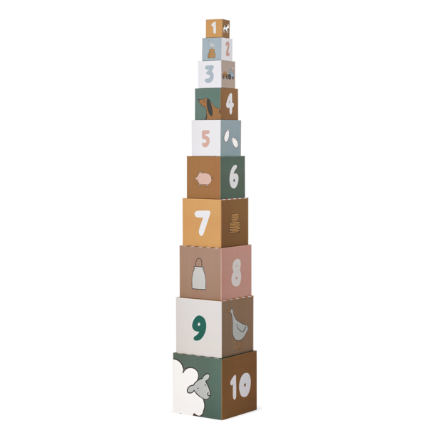 Emboîter, empiler, démonter et recommencer. Les boîtes à empiler Aaren, composées de 10 blocs carrés en carton épais, aident les petits constructeurs à exercer leur motricité fine tout en expérimentant les dimensions. Les différents motifs de chaque côté encouragent l'apprentissage des symboles et des chiffres.