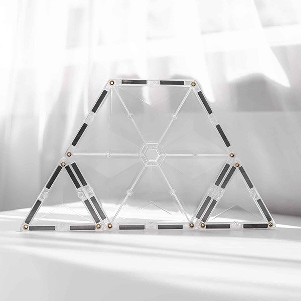 Avec ces blocs de construction magnétiques Connetix Tiles 34 Piece Clear Starter Pack, vous pouvez étendre vos créations Connetix avec des carreaux magnétiques biseautés transparents de différentes formes (y compris de grands hexagones). Avec ce package vous découvrirez une toute nouvelle dimension du jeu Connetix. Libérez votre créativité et construisez des designs inspirés allant de châteaux gelés, de flocons de neige scintillants et d'igloos glacés à des fenêtres fonctionnelles ou des maisons en cristal. Ce pack contient tout pour démarrer ou élargir votre collection Connetix, stimuler l'imagination et gagner en confiance en jouant avec les blocs de construction magnétiques.