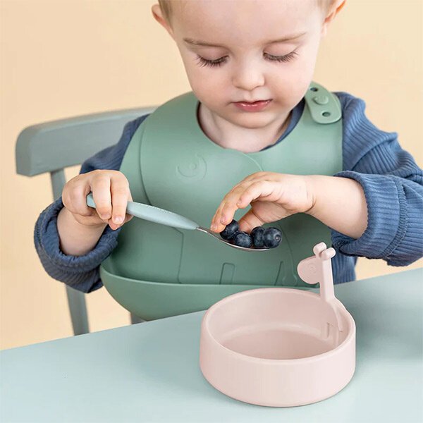 Le bol Peekaboo Raffi Powder de Done by Deer convient aux repas quotidiens. Le bol est fabriqué en silicone de qualité alimentaire, ce qui le rend incassable et adapté pour une utilisation au micro-ondes, au four, au congélateur et au lave-vaisselle. Le matériau rend le bol antidérapant. Le rebord haut permet aux jeunes enfants d'apprendre à manger et à ramasser facilement les aliments.