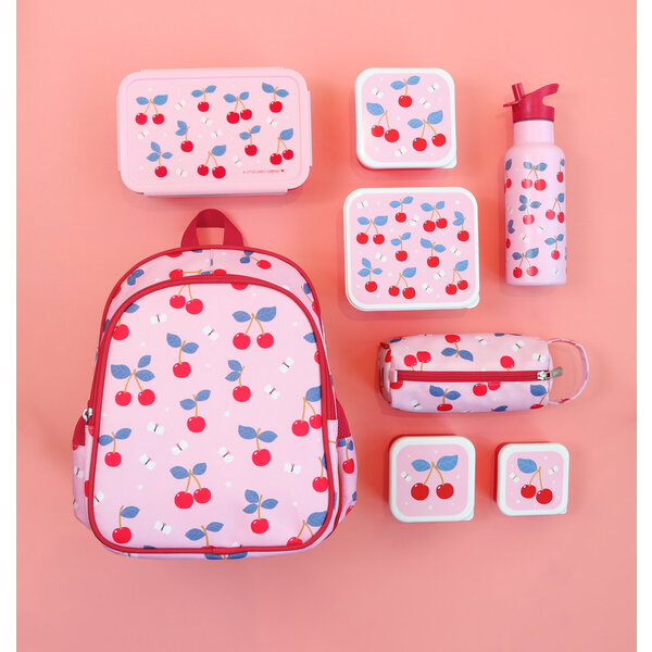 Complétez l'ensemble scolaire avec une pochette assortie, une boîte à lunch et une gourde en forme de cerise.