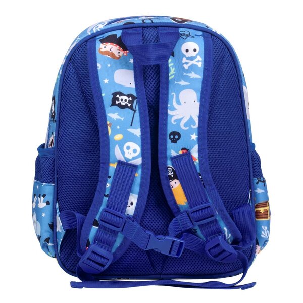 Le sac à dos pirate bleu est idéal pour aller à l'école ou voyager. Ce sac à dos pour enfants est doté d'un compartiment principal spacieux, d'une poche frontale isolée et de deux poches latérales ouvertes, suffisamment grandes pour contenir une boîte à lunch, un goûter et une bouteille d'eau. Le sac à dos est doté de bretelles rembourrées et d'une sangle de poitrine, afin qu'il ne glisse pas facilement des épaules. Le panneau arrière est doublé d'un tissu respirant pour plus de confort.