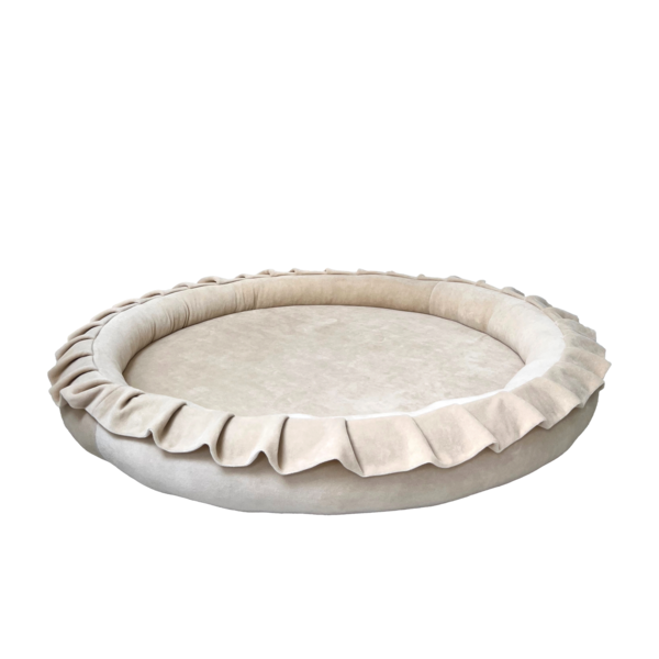Tapis de jeu rond, recouvert d'une housse en velours de coton doux, fini avec des volants élégants.