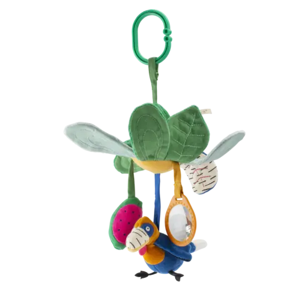 Jouets suspendus en forme de fleurs, disponibles en différentes couleurs, motifs et textures. Les bébés peuvent agiter le calao et la pastèque, jouer avec les pétales craquants et observer le monde à travers le prisme. En route pour de nouvelles découvertes !