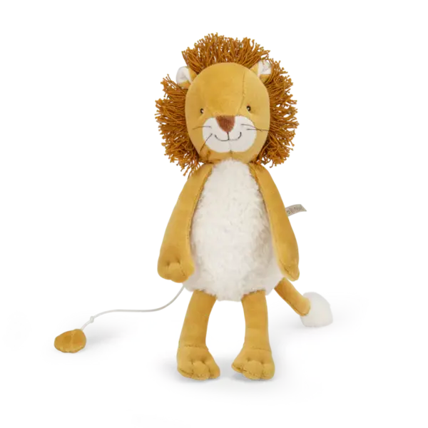 Avec sa crinière flamboyante, Mamba le lion rugit de joie pour apaiser le bébé. Tirez sur la languette pour activer la berceuse et passer une nuit tranquille. La boîte à musique est amovible, ce qui permet de la laver facilement.