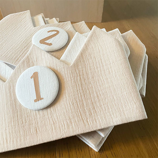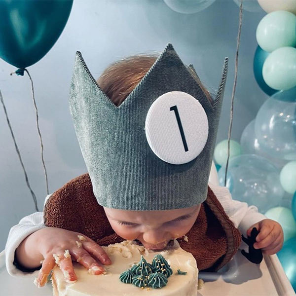 Avec la couronne d'anniversaire Emma, chaque anniversaire devient une fête! Cette couronne d'anniversaire est faite à la main à partir de coton super doux et convient à tout âge. La couronne se ferme avec un velcro et est livrée avec 2 boutons numériques (coulissants) dorés sécurisés (1 et 2). Vous pouvez commander des chiffres supplémentaires séparément.