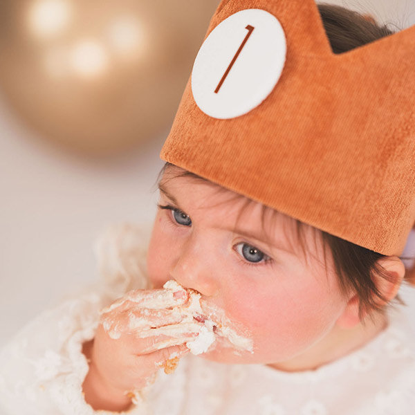 Avec la couronne d'anniversaire Odette, chaque anniversaire devient une fête! Cette couronne d'anniversaire est faite à la main à partir de coton super doux et convient à tout âge. La couronne se ferme avec un velcro et est livrée avec 2 boutons numériques (coulissants) dorés sécurisés (1 et 2). Vous pouvez commander des chiffres supplémentaires séparément.