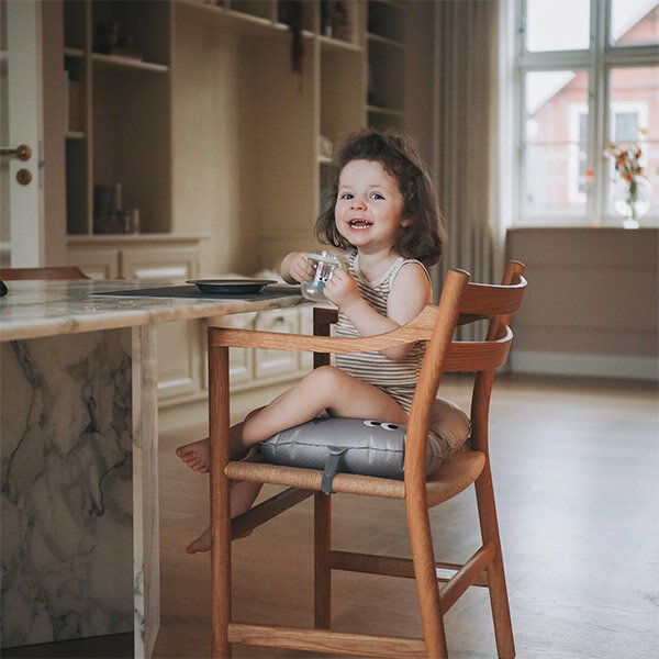 La bande élastique assure que le coussin de siège reste en place. Les picots en caoutchouc à l'arrière confèrent au coussin de chaise un effet antidérapant. Le coussin est livré avec une housse de rangement et peut être emporté partout. Le rehausseur idéal, moelleux et confortable pour votre enfant!