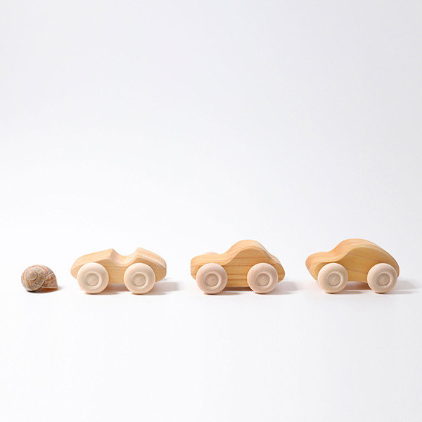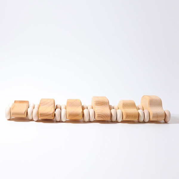 Lot de 6 voitures en bois: deux voitures particulières, deux fourgonnettes, deux voitures de course, chacune dans un modèle différent. En raison de la conception simple et des dimensions parfaites, les petites voitures sont faciles à saisir par les petites mains des enfants. Ces voitures fonctionnent assez bien hors route et conviennent à la conduite à la campagne. Les véhicules ne nécessitent pas un lavage complet après, mais peuvent être facilement nettoyés avec une serviette humide. Parfaitement adapté pour les ponts étroits de Grimm's, l'autoroute flexible Waytoplay et le Wobbel.