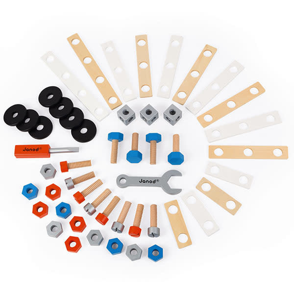 Caractéristiques de ce kit construction - Brico Kids - baril 50pcs - Janod +3 ans: