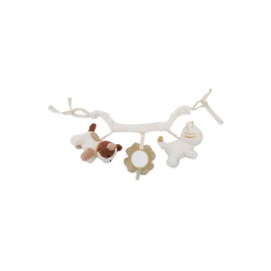 Cet adorable jouet pour poussette Tiny Park est parfait pour les déplacements. Il est décoré d'un adorable petit chien, d'un chaton et d'un trèfle à quatre feuilles, qui contient un petit miroir pour encore plus de divertissement. Le jouet émet également un son apaisant grâce à ses clochettes. Une façon agréable de divertir votre tout-petit pendant les déplacements !